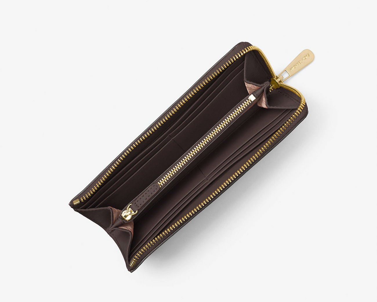 A compact accessory with maximum style, consider this sleek wallet for days that require on-the-go ease. With slim silhouette that partially unzips to reveal multiple card slots and a center compartment perfect for just the essentials. Slip it into the coordinating tote.