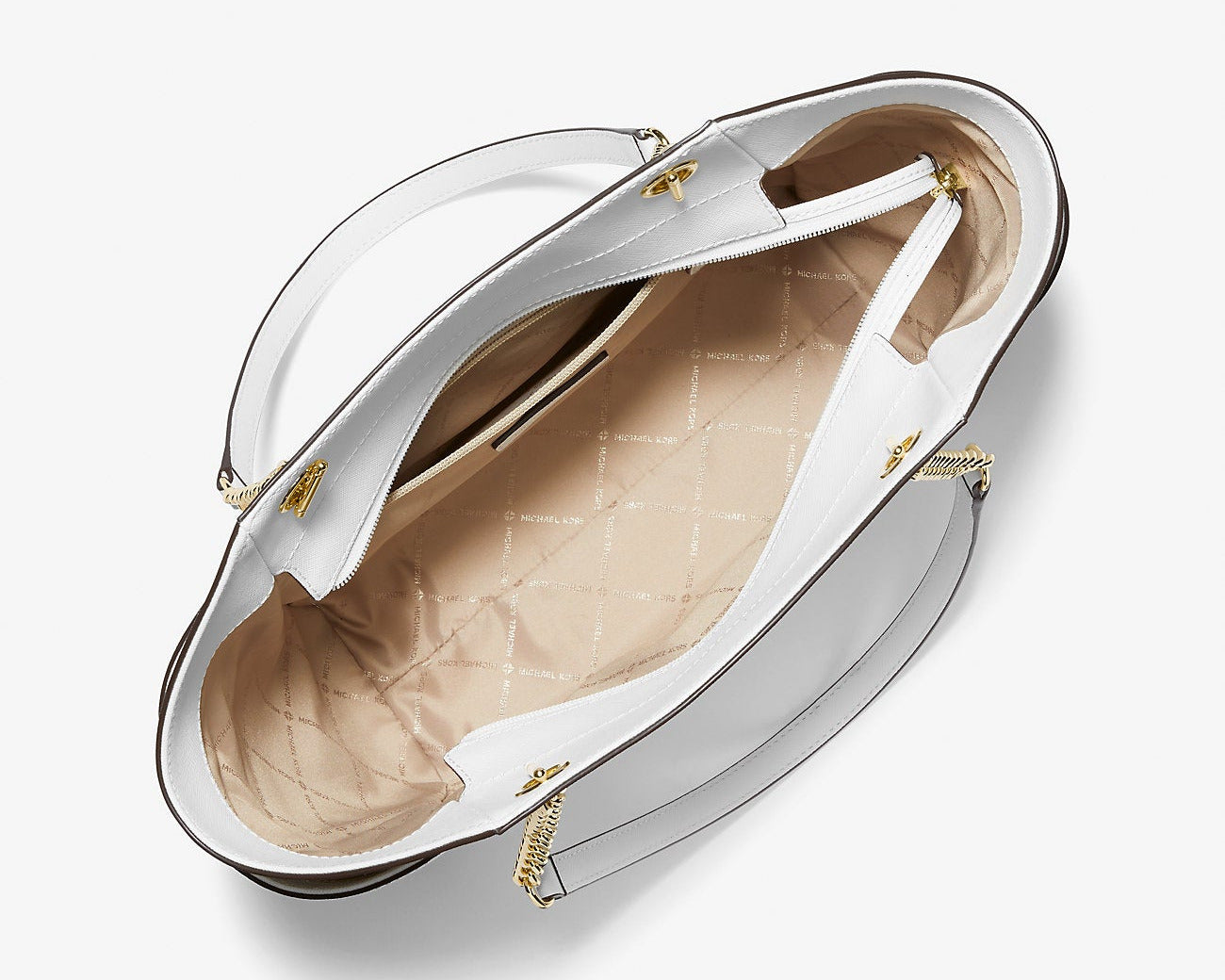 Ready to take you anywhere, this Jet Set shoulder bag is rendered in Saffiano leather. The architectural shape features convenient side pockets and a secure top-zip fastening. Use it to carry all your travel essentials.